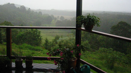First week, I spent with James in Byron Bay, an area up near Queensland up north of Sydney. It is known for being an area with much spiritual activity. Well, James and I had a lot of catching up to do. We had borrowed a beautiful apartment with an amazing view, which was the perfect spot to spend our vacation. From our bedroom window we watched beautiful sunrises at the sea, the world flying silently by, saw birds, other animals like cows, donkeys and wallabies (related to the kangaroo) and the green, green trees growing into the skies above. We got flooded in by heavy rains and had to rescue the van we had borrowed from a local creek. Then came the sun back and we went to the beautiful beaches that seem to be in profusion around here. It is not summer here, but when the sun is out and it is often, then it is warm. Nights are hard to get used to; very cold and there is no central heating here, and my poor body was expecting summer. |